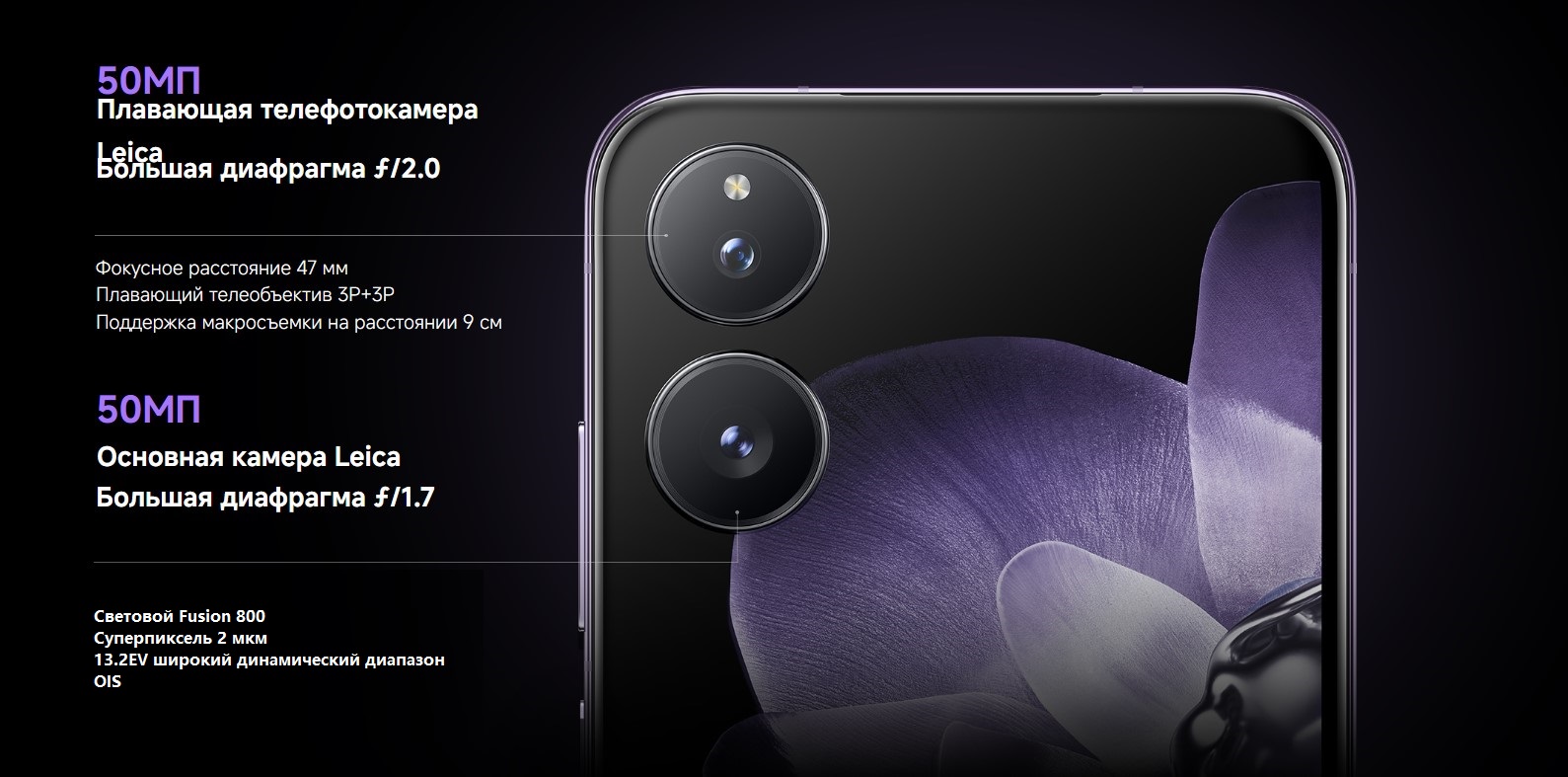 Особенности тыловой камеры | оптика Leica Summilux+W26:W38, 75-мм плавающий телеобъектив |