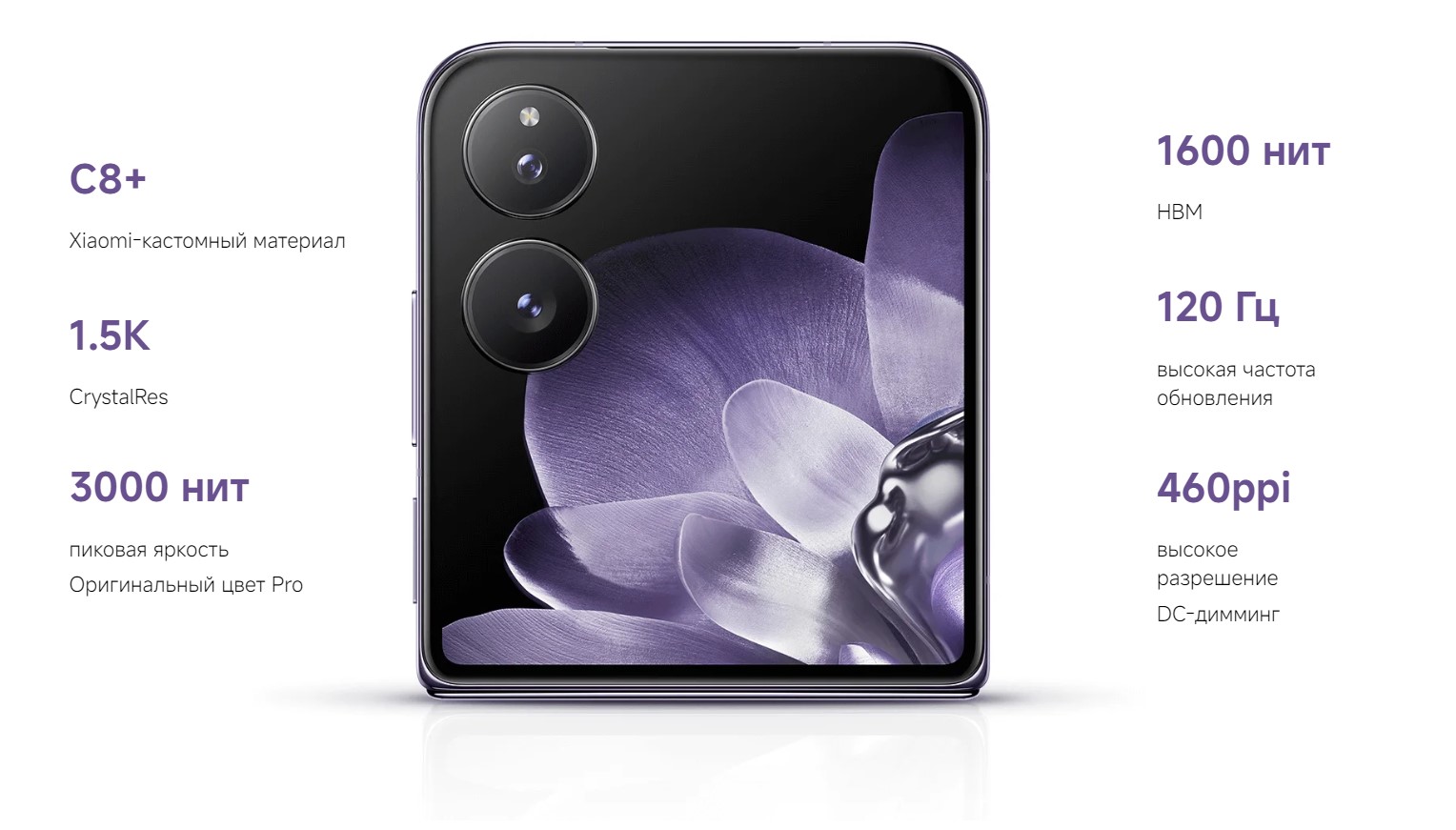 Особенности, дополнительно | технология Dolby Atmos, поддержка Dolby Vision, беспроводная зарядка 50 Вт, оболочка Hyper OS, степень защиты IP68, 4 микрофона, поддержка HDR10+, складная конструкция, диагональ дополнительного экрана 4.01", разрешение дополнительного экрана 1392x1208 |